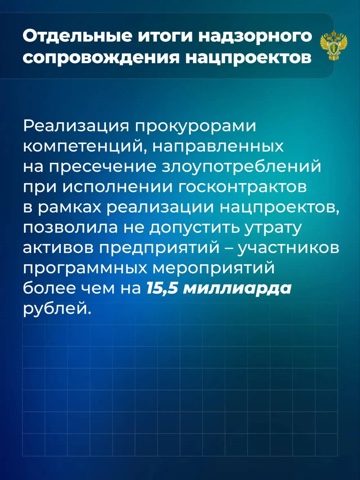 ✔️ На личном контроле Генпрокурора России Александра Гуцана находятся вопросы исполнения законодательства при реализации национальных проектов.