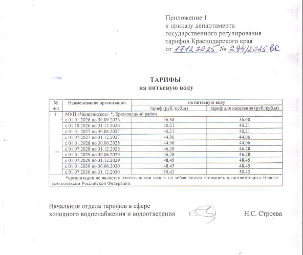 Приказ департамента цен и тарифов об утверждении тарифа на холодное водоснабжение
