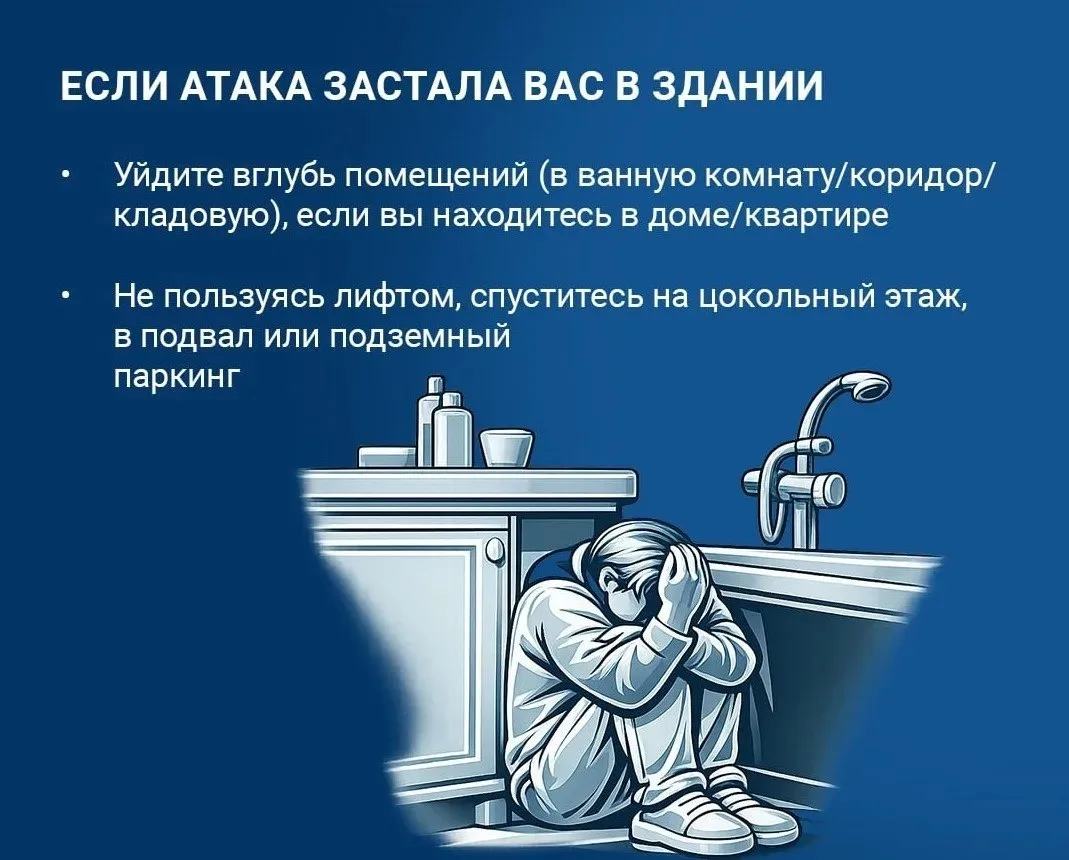 Если вы находитесь на улице, то постарайтесь покинуть опасную зону. Укройтесь в ближайшем здании.