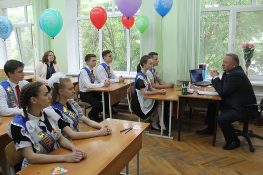 После окончания торжественной линейки в школе № 2, глава района Владимир Мусатов побеседовал с выпускниками на импровизированном «классном часе». Он рассказал ребятам о своих школьных и студенческих годах, о важности выбора профессии и о потребности нашего района в специалистах разной направленности.
