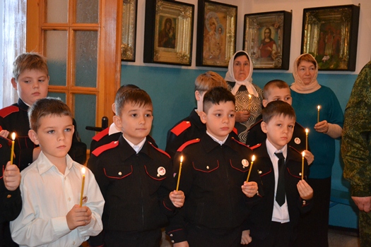 13 декабря в храме Иверской иконы Божией Матери в станице Новоджерелиевской Брюховецкого района учащиеся 1-х и 2-х классов СОШ № 13 и № 17, при участии учителей, родителей и казаков Новоджерелиевского хуторского казачьего общества торжественно были приняты в казачата. Настоятель храма отец Николай(Гайдабура) отслужил молебен по случаю этого события и напутствовал юных казачат.