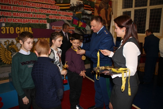 Церемония закрытия спортивных соревнований началась ближе к вечеру. Вручал кубки и дипломы победителям и призерам Прокурор Краснодарского края Сергей Табельский, подчеркнув, что именно забота о детях и подростках, является важнейшим гарантом, для существования любого государства, а правильное воспитание молодого поколения - приоритетная задача для любого культурного общества.