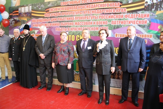 Участие в спортивном празднике приняли Сергей Табельский, прокурор Краснодарского края, государственный советник юстиции 2 класса, Зулима Бачемукова, заместитель прокурора Краснодарского края. Елена Воробьева, заместитель министра образования, науки и молодежной политики Краснодарского края, Евгений Норец, исполняющий обязанности прокурора Брюховецкого района, советник юстиции, Олег Федорович Кучерявский, начальник ОМВД РФ по Брюховецкому району, Отец Родион, настоятель храма Святых Апостолов Петра и Павла станицы Брюховецкой, Анатолий Виниченко, мастер Спорта СССР по вольной борьбе, Заслуженный работник физической культуры и спорта Кубани, кандидат педагогических наук, профессор, прокуроры муниципальных образований, принимающих участие в состязаниях и глава района Владимир Мусатов.