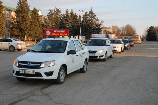 Сегодня состоялся традиционный автопробег. Колонна автомобилей проследовала по центральным улицам станицы Брюховецкой, а затем отправилась в село Свободное.