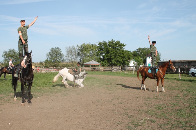 Воспитанники спецшколы подготовили показательные выступления на полосе препятствий, джигитовку и конкур. Участники поисково-туристского казачьего клуба "Забытый Полк" рассказали гостям о найденных на территории района артефактах, которые были представлены на выставке. Традиционное катание на казачьих тачанках также стало одним из ярких впечатлений, которое останется у всех участников экскурсии надолго.