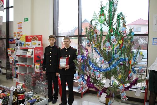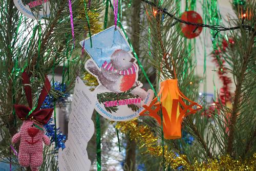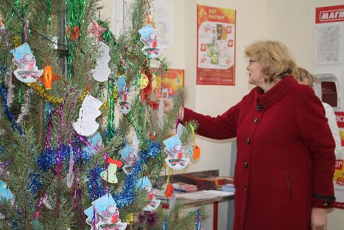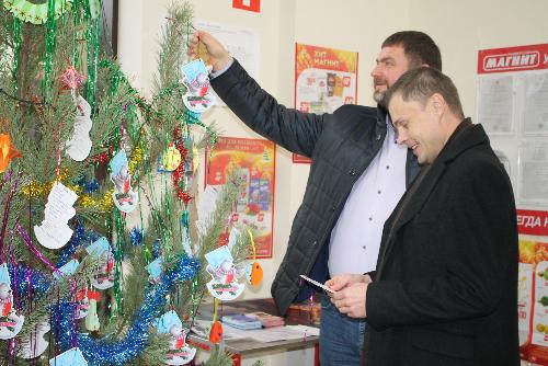 Елку установили в магазине «Магнит» по ул.Кирова,115 в станице Брюховецкой. На ветках развесили открытки - «снегирьки» с заветными желаниями детей.