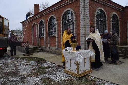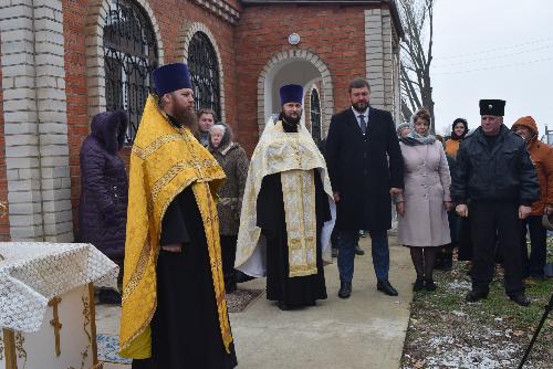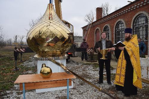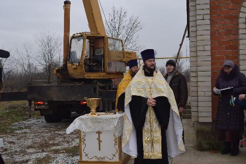 Прежде чем заняться установкой, у стен храма был совершен молебен и освящение купола. Протоиерей Владимир Вакуленко поздравил жителей села с этим радостным событием. В своем обращении к собравшимся протоиерей поблагодарил всех, кто от начала и по сегодняшний день помогает приходу храма.