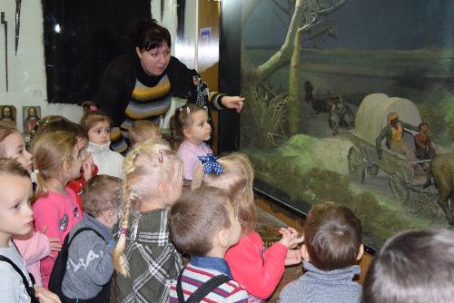Патриотические уроки для воспитанников детских садов проходят в брюховецком историко-краеведческом музее. Ребятам рассказывают о мужестве, храбрости, патриотизме, о том, какими качествами должен обладать защитник Родины. Юные посетители узнают о трагических событиях блокадного Ленинграда, о безудержном стремлении советских солдат одержать победу над немецкой армией, о подвигах, совершенных во имя Победы.
