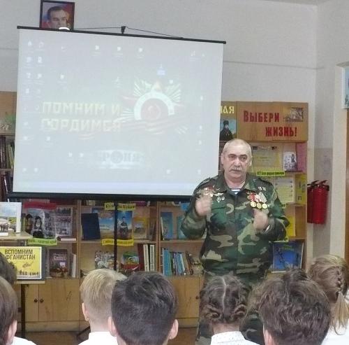 В преддверии Дня памяти россиян, исполнявших служебный долг за пределами Отечества, в цикле мероприятий «Мы помним всех – это святое» в библиотеке школы №20 состоялась встреча с ветераном Афганской войны.