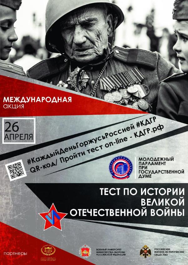 26 апреля состоится традиционная международная акция «Тест по истории Великой Отечественной войны». В преддверии Дня Победы всем желающим будет предложено проверить знания о самом трагическом периоде истории человечества.