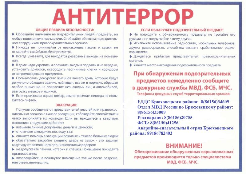 Памятка антитеррористической безопасности