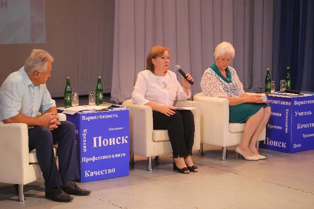 Участие в её работе приняли заместитель главы района Елена Петрова, председатель Совета Виктор Кошелев, председатель профсоюза отрасли Юрий Бугайков, настоятель храма св. апостолов Петра и Павла Родион Драпов, представители многочисленного педагогического сообщества.