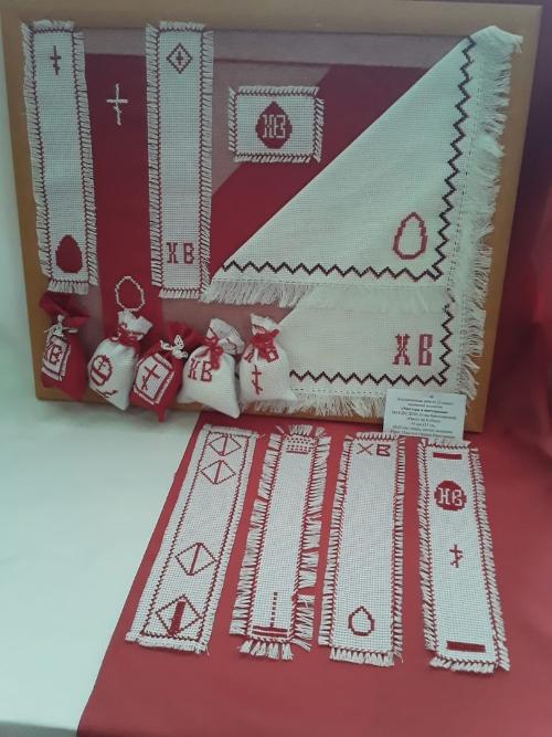 Салфетки большие и маленькие, закладки для книг и мешочки для пасхальных яиц объединились в одну коллективную творческую работу «Пасха на Кубани». Работы выполнены в технике «вышивка крестом». В подготовке коллективной работы приняли участие учащиеся 1-2, 4 классов.