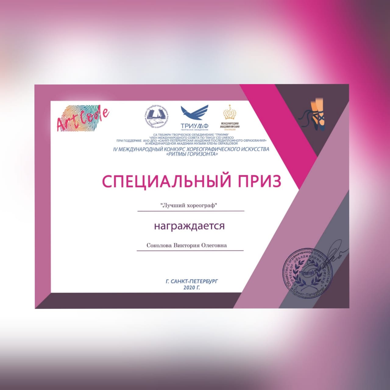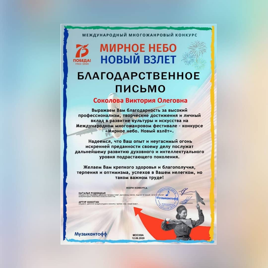 Руководители ансамбля Соколова В.О. и Шидловская Е.В. были отмечены благодарственными письмами за высокий профессионализм, творческие достижения, личный вклад в развитие культуры и искусства.