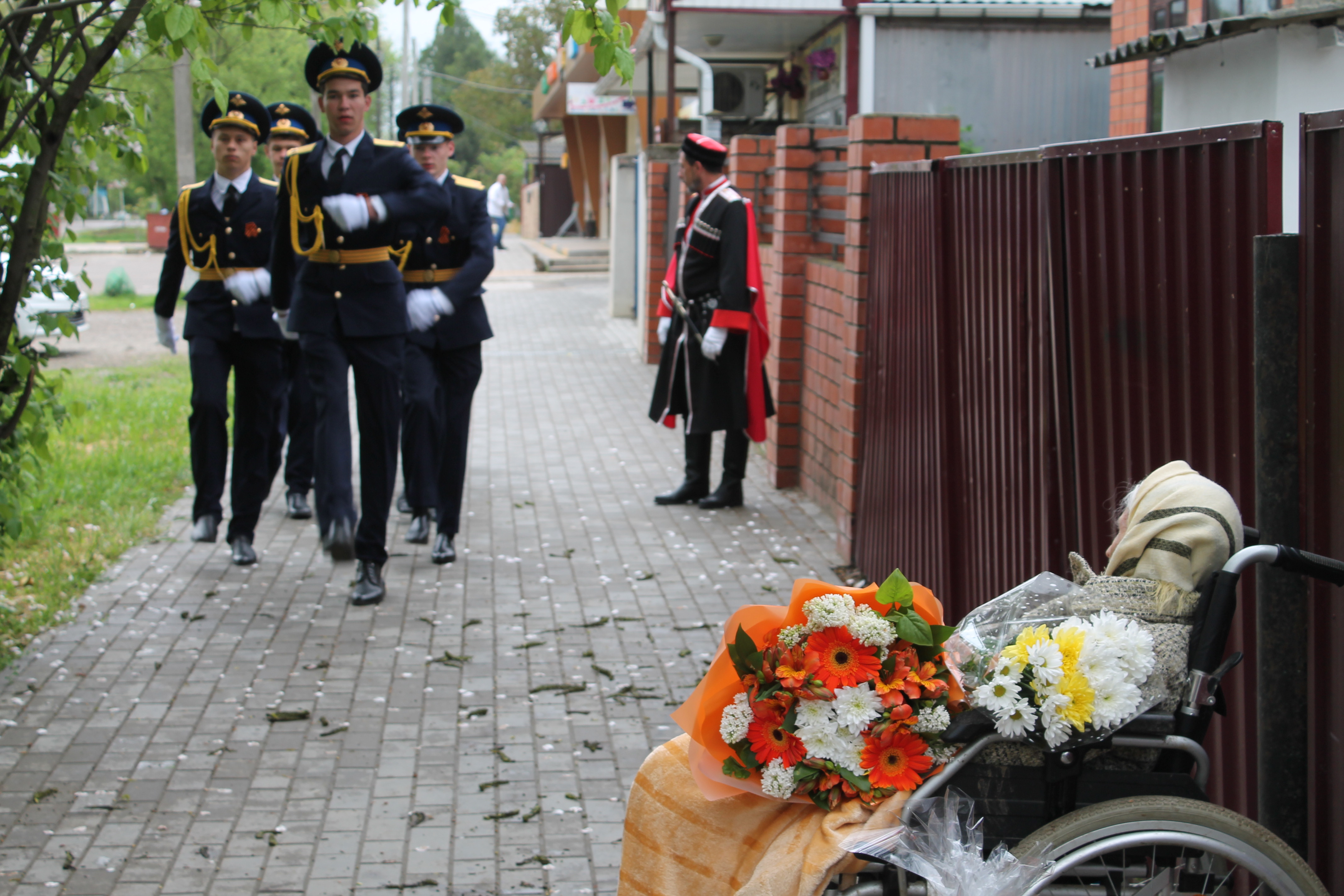 Сегодня перед домами ветеранов торжественным маршем прошли юнармейцы Брюховецкого района. Локальные парады в честь 76-й годовщины Победы участники Великой Отечественной принимали с благодарностью.