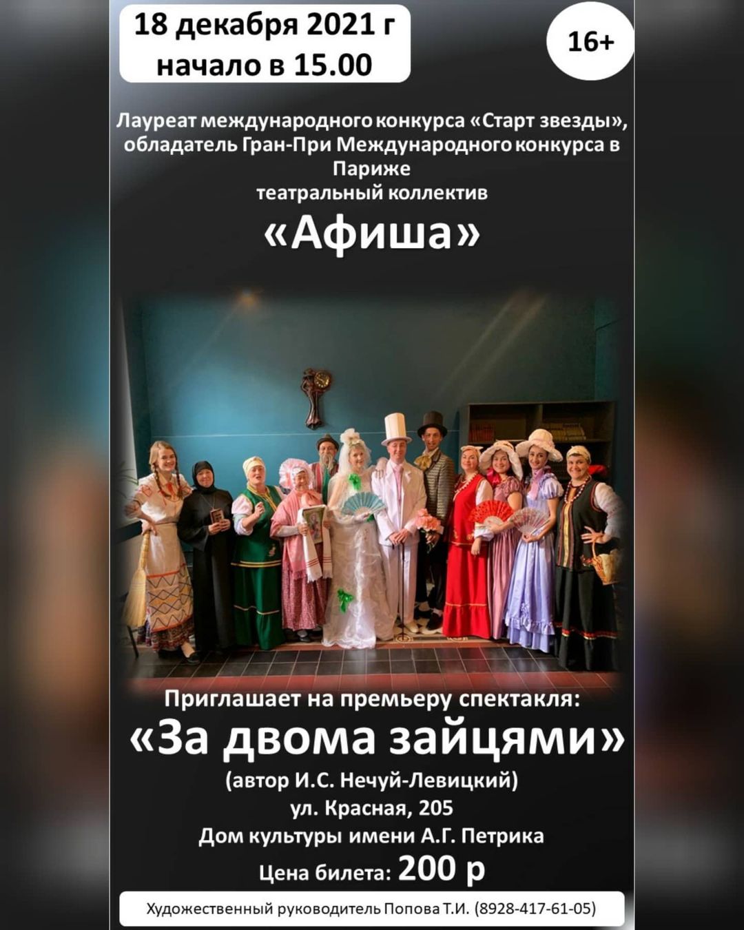 Лауреат международного конкурса "Старт звёзды", обладатель Гран-При Международного конкурса в Париже, Театральный коллектив "Афиша!"