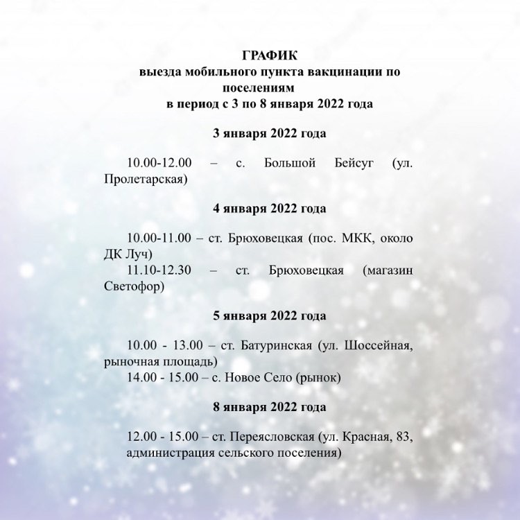 1 января 2022 Что и как будет работать в новогодние выходные Важная информация для жителей Брюховецкого района!