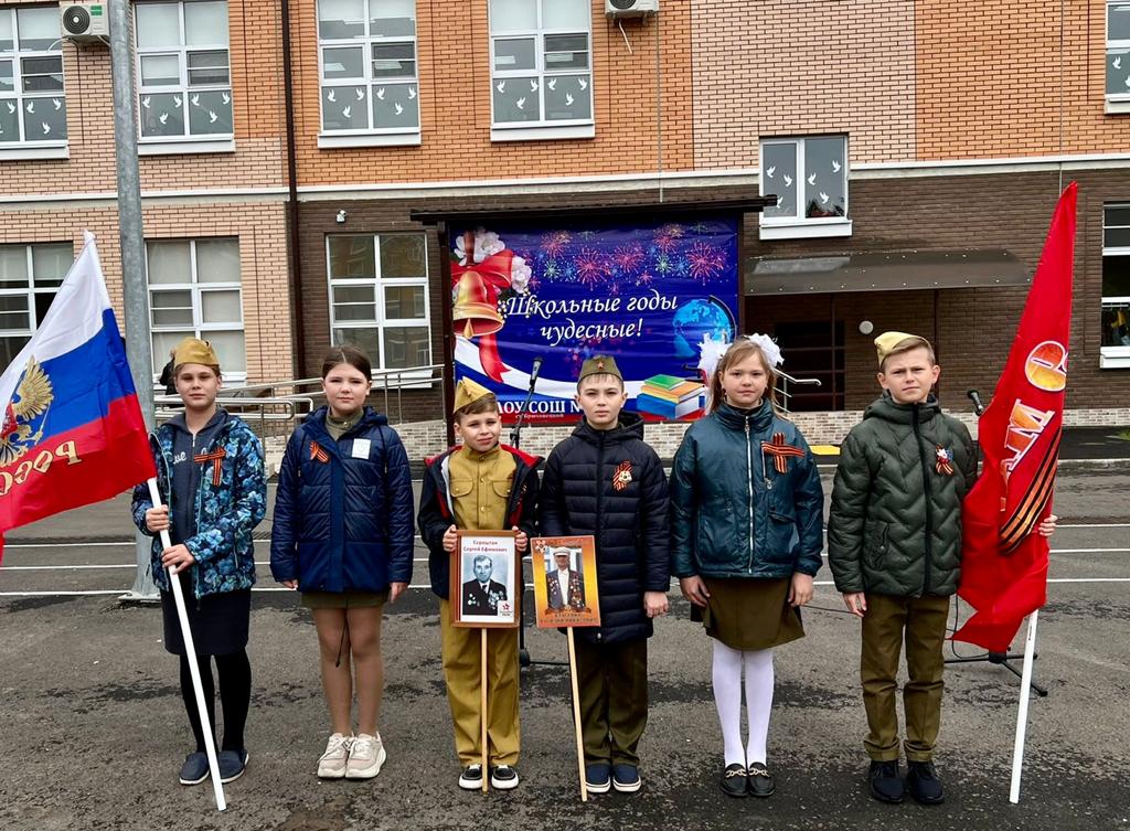 В средней общеобразовательной школе №3 станицы Брюховецкой готовятся торжественно отметить 77-ю годовщину Победы. Сегодня учащиеся собрались на торжественной линейке, на которую принесли портреты своих родственников, принимавших участие в Великой Отечественной войне.