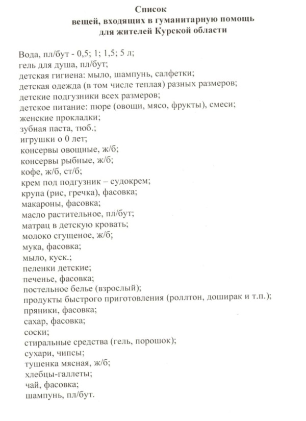 Информация для тех, кто хочет поучаствовать в сборе гуманитарной помощи: