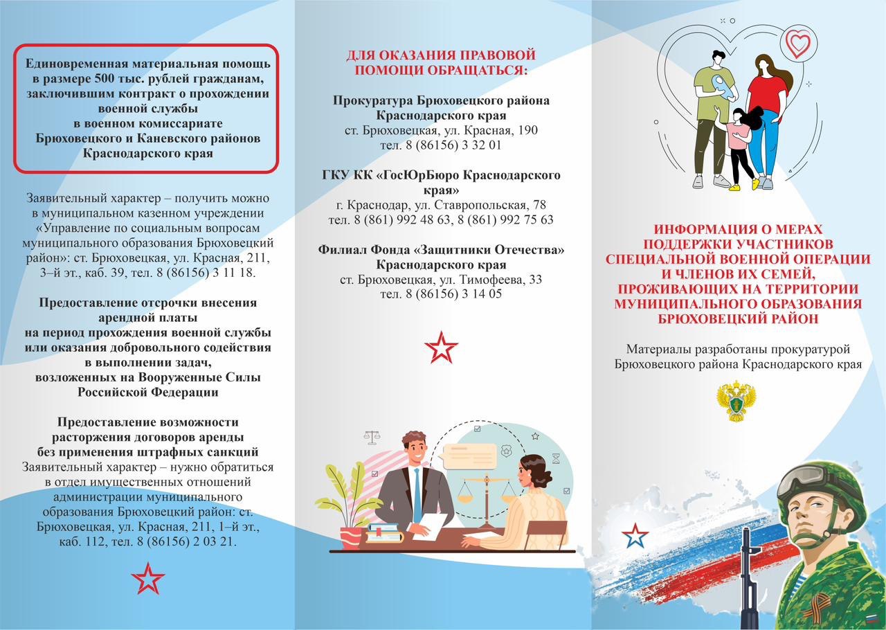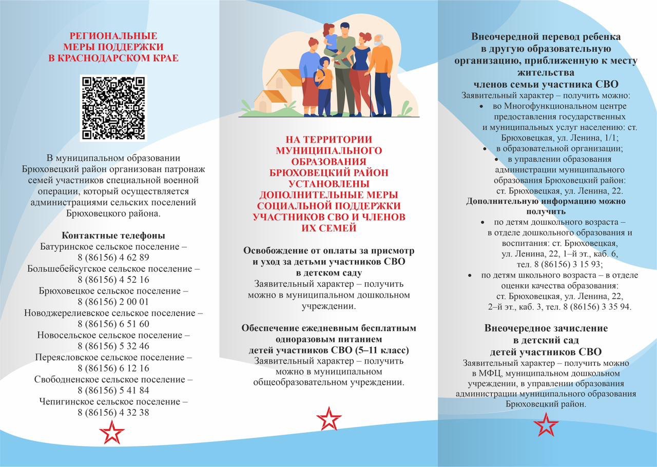 Информация о мерах поддержки участников специальной военной операции и членов их семей, проживающих на территории Брюховецкого района